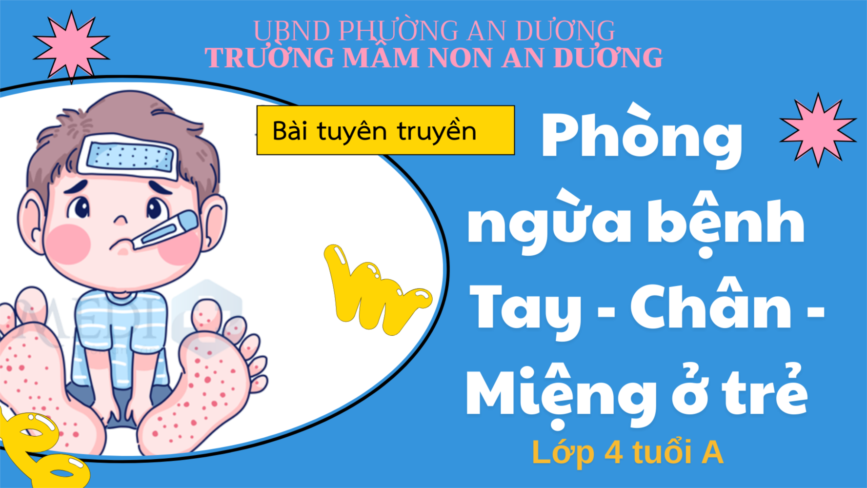 Nhằm giúp phụ huynh hiểu rõ hơn và chủ động phòng tránh bệnh tay – chân – miệng cho trẻ, lớp 4TA – Trường Mầm non An Dương đã tổ chức hoạt động tuyên truyền nhỏ nhưng rất thiết thực.