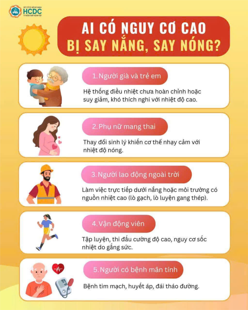 Say nắng, say nóng và đột quỵ do nóng có thể xảy ra ở mọi lứa tuổi, đặc biệt: