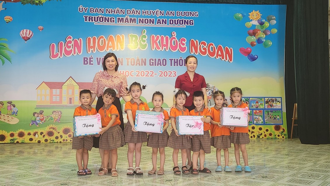 Liên hoan “Bé khỏe ngoan” là sân chơi bổ ích nhằm phát triển toàn diện cho Bé. Ngày 22/5/2023, trường mầm non An Dương đã tổ chức liên hoan “Bé khỏe ngoan” lồng ghép sân chơi “Bé với An toàn giao thông” cấp trường năm học 2022-2023. Các bé trong nhà trường tích cực phấn khởi tham gia. Liên hoan đã tạo cơ hội để các bé được thể hiện bản thân như sự mạnh dạn, tự tin trong giao tiếp; thể hiện được năng lực bản thân trong các lĩnh vực phát triển thể chất, ngôn ngữ, nhận thức, thẩm mỹ, tình cảm kỹ năng xã hội, các kỹ năng an toàn khi tham gia giao thông. Nội dung kiến thức phù hợp với nhận thức của bé theo từng độ tuổi. Liên hoan diễn ra trong bầu không khí vui vẻ, đảm bảo tính vừa sức và an toàn. 100% các nhóm lớp tham gia thực hiện nghiêm túc nội quy của liên hoan. Đồng thời liên hoan nhằm tuyên truyền và tăng cường hơn nữa sự ủng hộ, phối hợp của phụ huynh với nhà trường trong công tác chăm sóc giáo dục trẻ, tạo điều kiện cho bé phát triển toàn diện về nhân cách. Qua hội thi thấy được sự ngộ nghĩnh đáng yêu của các bé. Liên hoan “Bé khỏe ngoan” năm học 2022-2023 trường mầm non An Dương đã thành công tốt đẹp. Kết thúc liên hoan Ban tổ chức đã trao giải và phần thưởng cho các đội tham gia gồm 4 giải nhất, 4 giải nhì, 4 giải ba. Nhà trường xin được gửi lời cảm ơn đến các bậc cha mẹ của các bé đã quan tâm, tạo điều kiện phối hợp cùng với nhà trường để các bé đạt được những thành tích như ngày hôm nay. Chúc các bé luôn vui, khỏe, là những Bé ngoan của trường mầm non An Dương và của Ba mẹ nhé!
