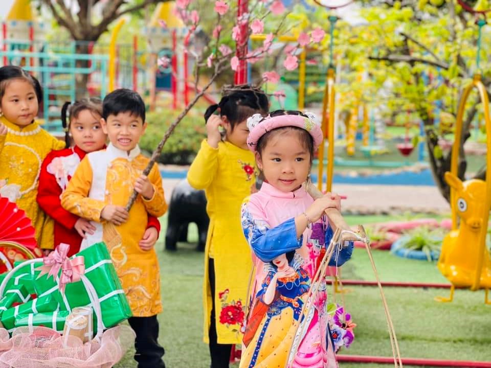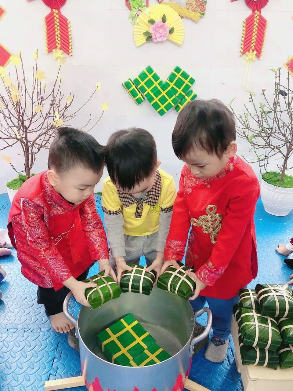 Tết nguyên đán hay tết cổ truyền là nét đẹp văn hóa truyền thống từ ngàn đời của dân tộc ta. Không khí ngày tết, con người cảnh vật ngày Tết cũng trở nên thật đặc biệt. Nhưng có lẽ, Tết đẹp nhất, đáng nhớ nhất vẫn là trong mắt trẻ thơ. Để tạo nên không khí ấm áp, háo hức chờ đón ngày tết các cô giáo trường mầm non An Dương đã tái hiện không khí chợ xuân và tổ chức cho trẻ những hoạt động trải nghiệm như: Gói bánh trưng, trang trí cành đào, cành mai, mặc những bộ quần áo tết, đi chợ tết…Qua những HĐ trải nghiệm đã giúp trẻ hiểu thêm về ý nghĩa ngày tết, có ý thức giữ gìn nét đẹp văn hóa truyền thống của dân tộc.