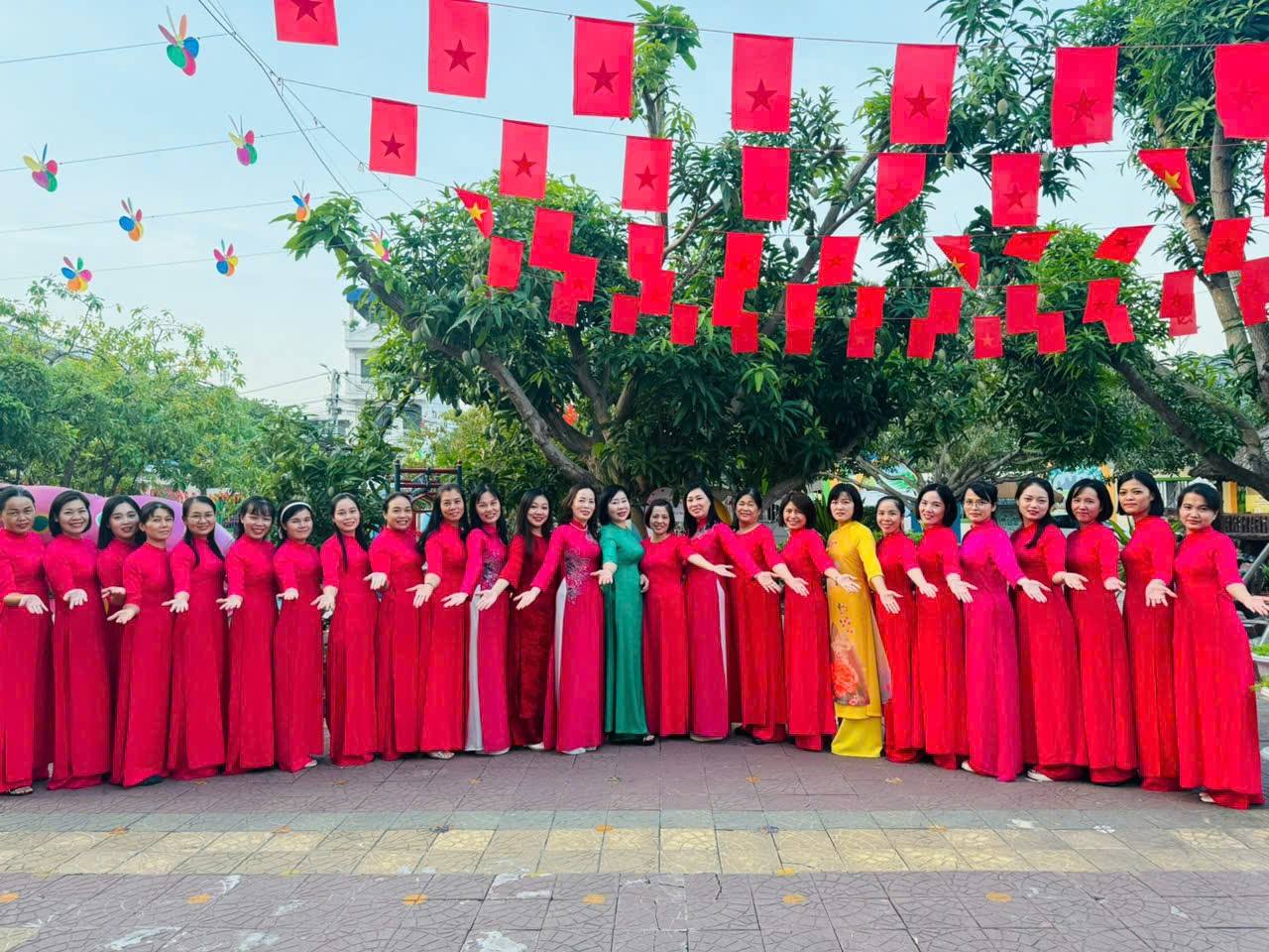 🌷 Trong sắc màu rực rỡ của áo dài, nụ cười của các cô giáo thêm tươi.