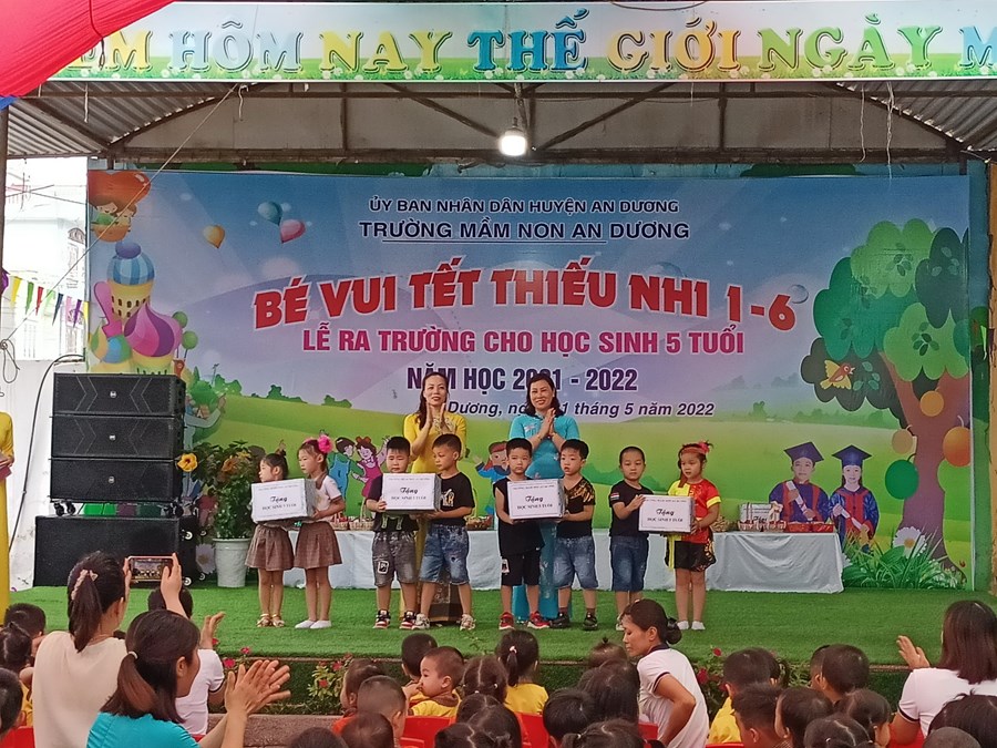 - Tặng quà 1/6 cho 100% các cháu học sinh trong nhà trường, quà tặng lễ ra trường cho các cháu học sinh 5 tuổi và đặc biệt là những phần quà vô cùng ý nghĩa dành cho những cháu có hoàn cảnh khó khăn trong nhà trường.