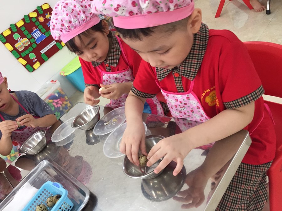 Hoạt động bóc trứng là một hoạt động thú vị của các bạn nhỏ, tuy đơn giản nhưng mang lại sự trải nghiệm vô cùng to lớn, nó giúp trẻ rèn luyện sự khéo léo của những ngón tay, sự tỉ mỉ giúp rèn luyện tính kiên trì cho trẻ. Những quả trứng đã được các con "bóc" rất nhanh và khéo. Thông qua hoạt động này, đã rèn cho các con sự khéo léo của đôi bàn tay và đặc biệt các con có thể giúp bố mẹ trong việc nội trợ rồi đấy. Bố mẹ hãy cùng xem chúng con làm nhé! Hy vọng qua những hoạt động như này sẽ giúp các bé phát triển kỹ năng sử dụng đôi bàn tay khéo léo của mình, xây dựng sự tự tin, tính kiên trì và phát triển nhân cách toàn diện. Sau đây là một số hình ảnh của các bé trong buổi trải nghiệm ngày hôm nay.